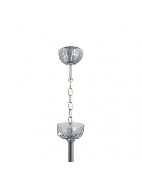 Its 30 light points, distributed on three staggered levels (15+10+5), create a notable visual impact, the curved arms in smoked glass end in elegant bowl cups.