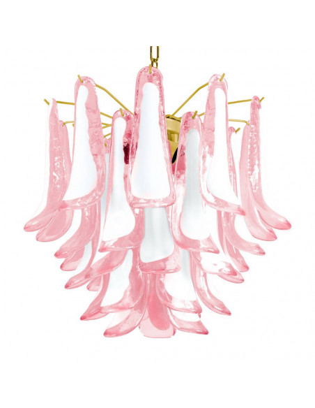 Enchanting chandelier with sella Murano glass petals, decorated in white lattimo.
