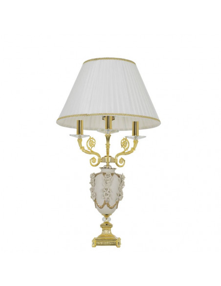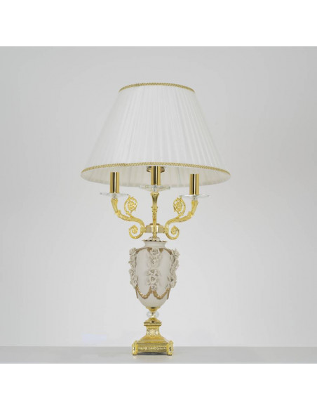 Un chandelier au style classique, doté d’un corps central en porcelaine de Capodimonte finement décorée et d’une structure en laiton finition or français.Produit artisanal certifié.