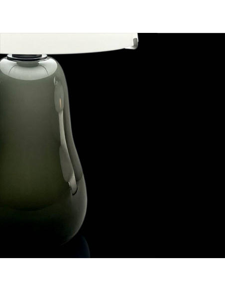 Le socle est réalisé en verre fumé satiné, idéal pour s’accorder à tout style d’intérieur. Le diffuseur satiné émet une lumière chaude et enveloppante, parfaite pour une ambiance détendue.