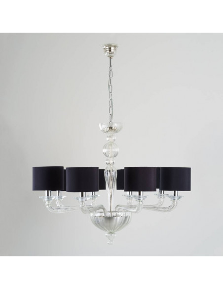 Élégant lustre moderne en verre de Murano avec abat-jour en tissu, charme et style italien.