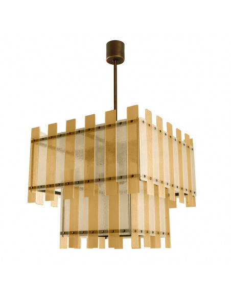 Lustre contemporain aux formes carrées, Sestiere parvient à rendre majestueuse chaque pièce dans laquelle il est inséré. La forme définie par une structure métallique raffinée rappelle la solidité d'une ancienne tour, elle est agrémentée de splendides verres de Murano.